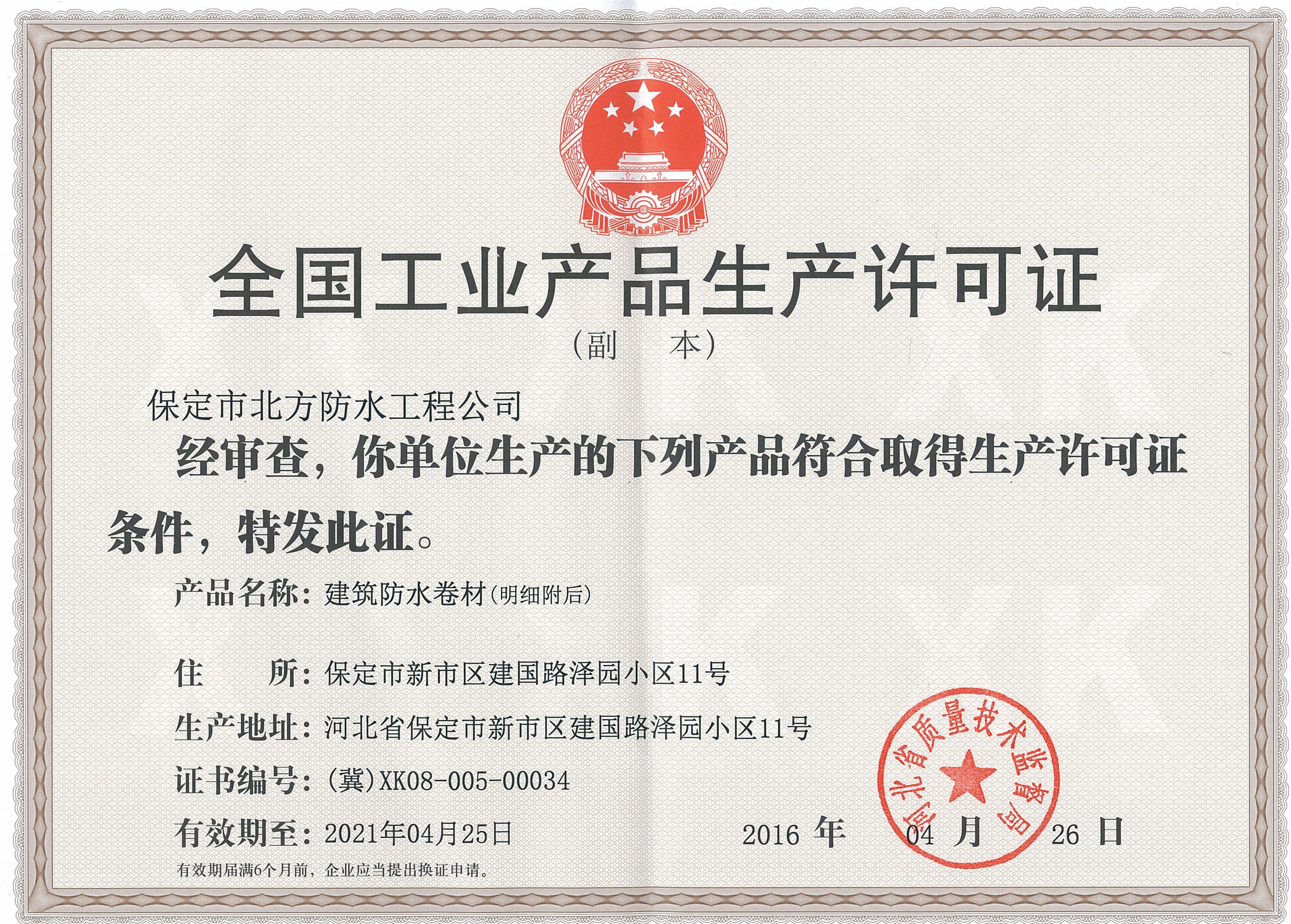 • 河北省建筑防水標桿企業