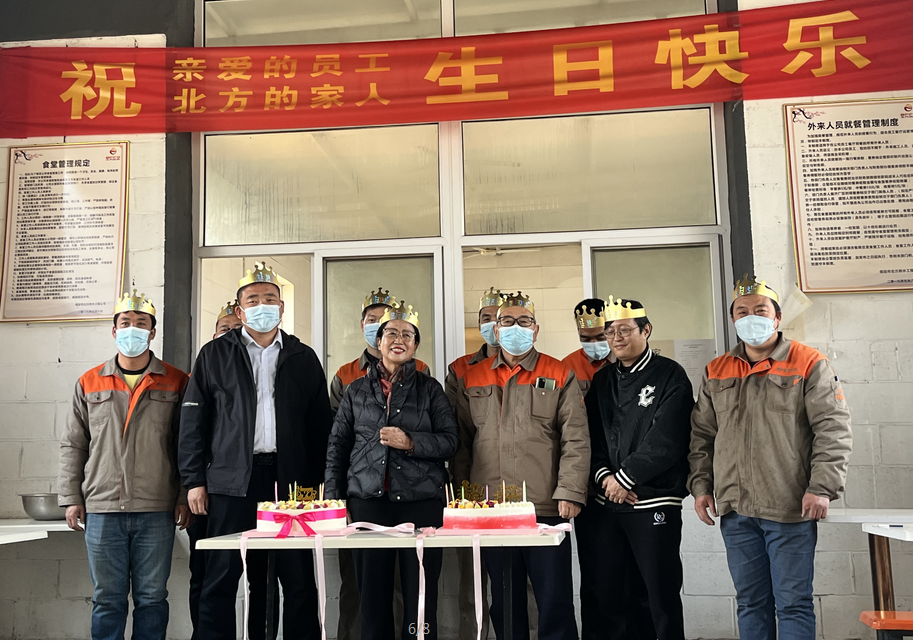 公司食堂準備了豐盛可口的飯菜,公司準備了生日蛋糕,董事長發表講話,并為過生日的同志送上生日祝福,公司員工聚在一起唱生日歌,分享生日蛋糕。大家都覺得十分幸福,因為我們是相親相愛一家人。